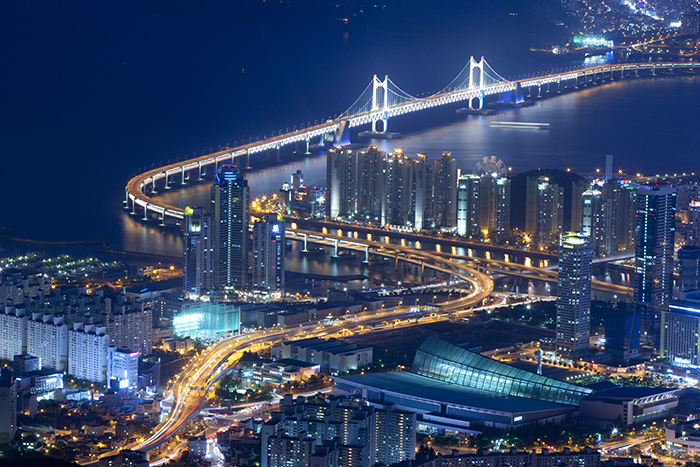 Gwangandaegyo Bridge is one of the landmarks of Busan and can be seen from Gwangalli Beach, Haeundae, or Waterside Park. The upper deck of the bridge offers a panoramic view of the unbelievably beautiful seas of Busan, the Oryukdo Islets just out of arm’s reach, and the elegant perch of Dongbaekseom Island next to the Haeundae Beach. Gwangandaegyo Bridge is also known for its breathtaking light shows involving more than 100,000 colors each night. Gwangalli Beach is the best place to enjoy this light show. Once the night arrives, many people flock to the beach to witness the beauty of the bridge at night. Others opt to take a yacht to appreciate Gwangandaegyo Bridge completely.