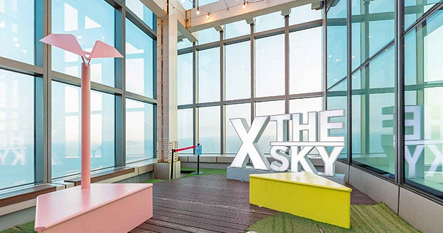 BUSAN X the SKY is located in the second highest building in Korea, Haeundae LCT the Sharp (411.6 m). In this highest, biggest-scale observatory, you can view the wide-spread ocean of Haeundae and the beautiful city of Busan. On top of the world-famous landmark of Busan such as the Gwangan Bridge and Marine City, you can view the day and night of Busan while you enjoy the premium services of the interior media facade, lounge cafe, and casual cafe. Experience the whole world below your feet at BUSAN X the SKY!