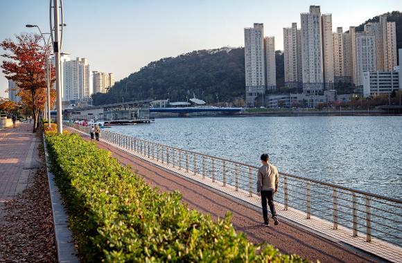 APEC Naru Park is a small space that stretches out along the Suyeong Riverside, there are tables where you can read, a walking path, a jogging course, and a sculpture park. Enjoy the freedom to flip through the pages of the book under the tree shade while feeling the breeze from the river. Or, how about a leisurely stroll? Ride a bike to roam around the peaceful park. Small but sure happiness in the urban area of Busan occurs at the APEC Naru Park.