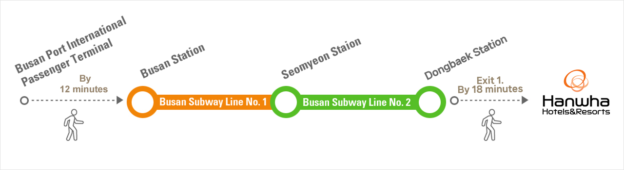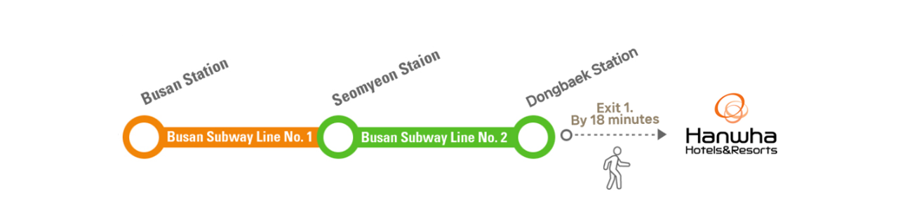 Busan Subway Line No. 2 | Seomyeon Station | Dongbaek Station | About 30 mins | KRW 1,800 | 5-10 mins |